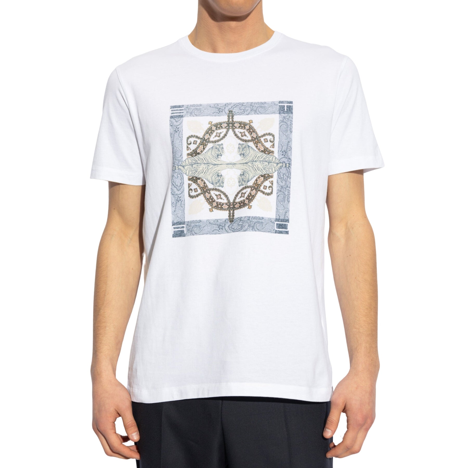 Experience luxury and style in the Etro T-Shirt Roma White. Crafted from high-quality materials, this t-shirt exudes sophistication and comfort. The iconic Etro logo adds a touch of elegance to any outfit. Elevate your wardrobe and make a statement with this must-have piece.